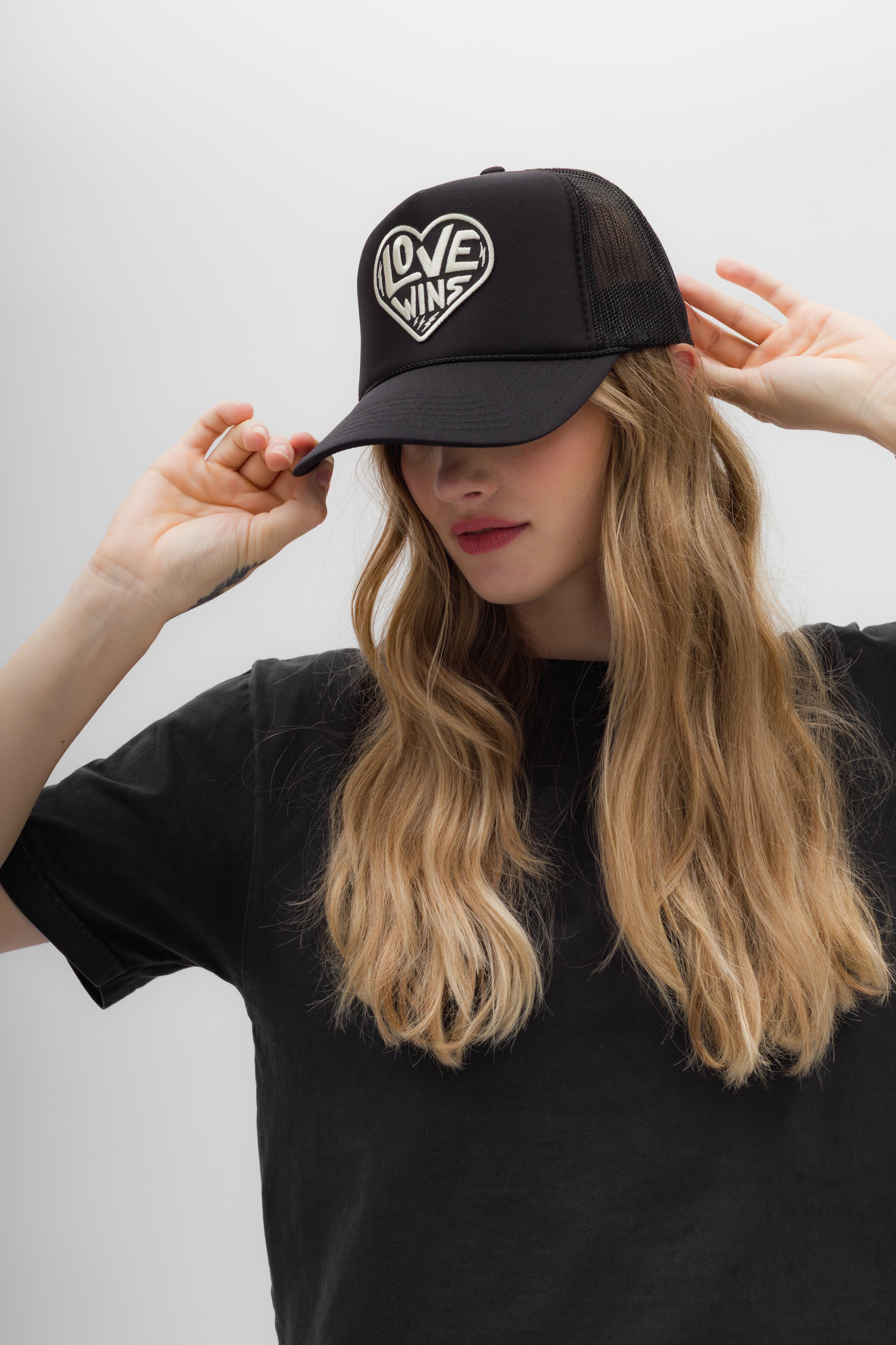 LOVE WINS BLACK TRUCKER